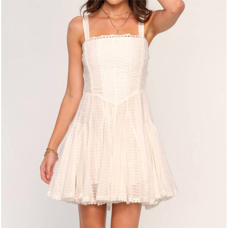 The perfect mini dress for those warmer months.Introducing the May Dress by Heartloom, a stunning eggshell mini dress that beautifully combines style and comfort. This sleeveless fit and flare design features a square neck, with ashed cotton voile for a light, breathable texture and smocking at the back for stretch. Crafted from 100% cotton, it includes godet detailing for a feminine touch. Length - 33'' from high point of shoulder. Closure - Pull on. Perfect for the warm weather, this dress is sure to become a favorite.