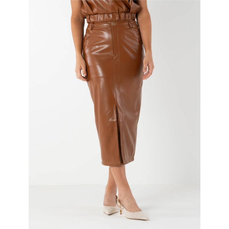 Fit flattering, sexy and comfortable. This pencil skirt has it all.Enhance your wardrobe with the Emily McCarthy Pencil Skirt in captivating Mocha, crafted from premium Polyester for a sleek, tailored fit. This solid-colored skirt features convenient pockets and a button closure, perfectly balancing style and functionality. Ideal for spring workwear or sophisticated evening events, its versatile design pairs effortlessly with blouses and blazers. Maintain its quality with hand washing and line drying.