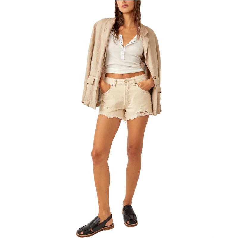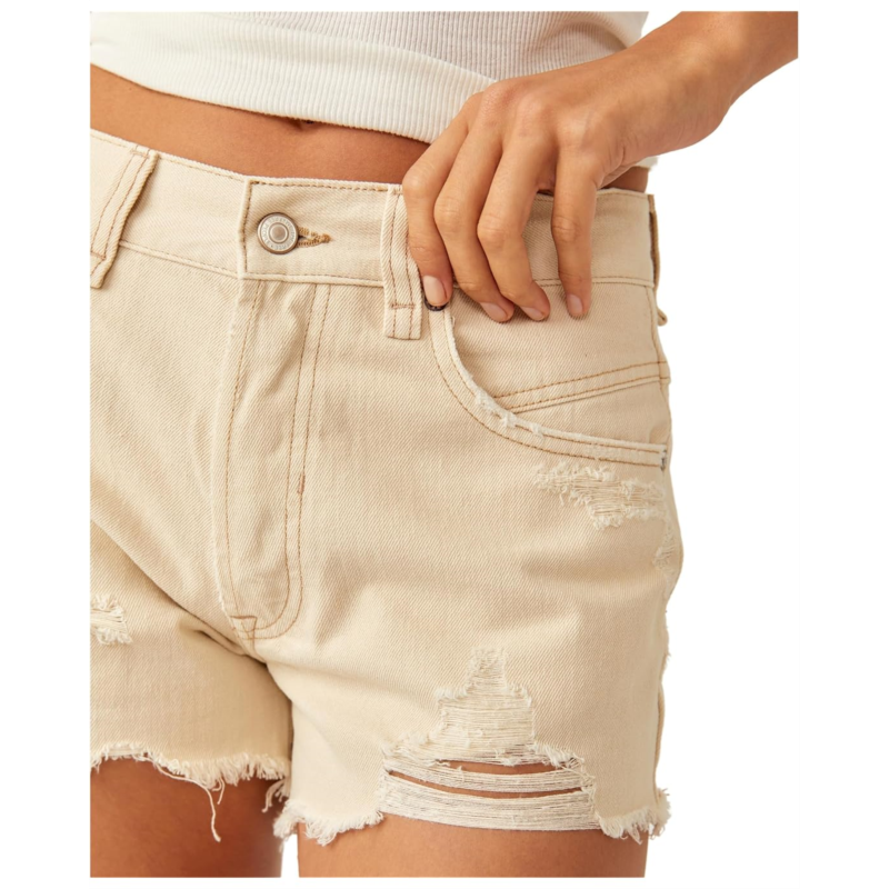 - Keep your style cool and rugged on your casual days by pairing up with the Free People Now Or Never Denim Shorts. Versatile and comfortable, this staple piece features a relaxed silhouette with a mid-rise waist, a zip-fly and button closure, five-pocket design, and distressed detailing with frayed hem.