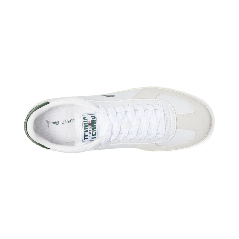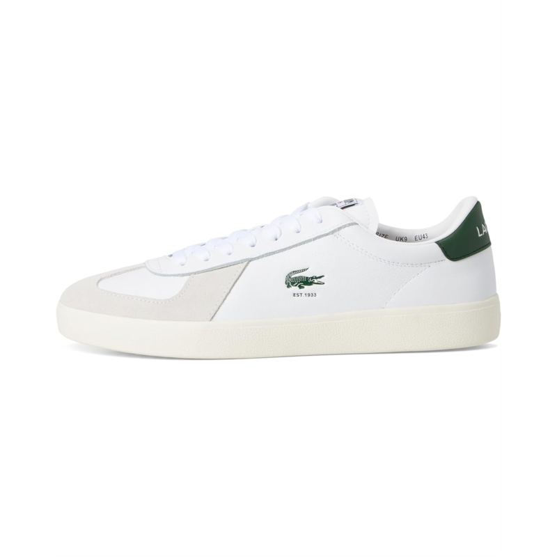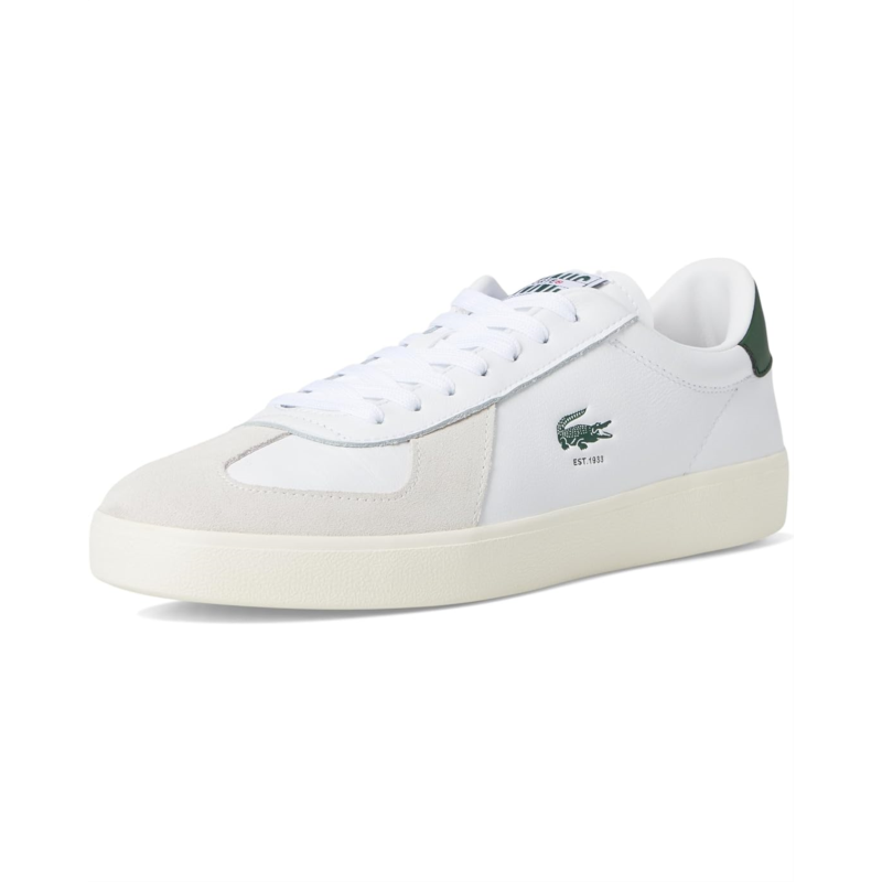 - Ace your style game wearing the Lacoste Baseshot Pro Sneakers-where retro tennis heritage meets modern flair. Inspired by Lacostes legendary 1920s court styles, this fresh iteration blends classic sophistication with everyday comfort. Crafted with a smooth leather upper and suede overlays, these sneakers exude effortless elegance. Inside, a polyester lining ensures a snug fit, while the rubber insole and outsole provide superior traction and durability. The lace-up closure secures your stride, and the iconic debossed and printed crocodile branding adds an unmistakable Lacoste touch.