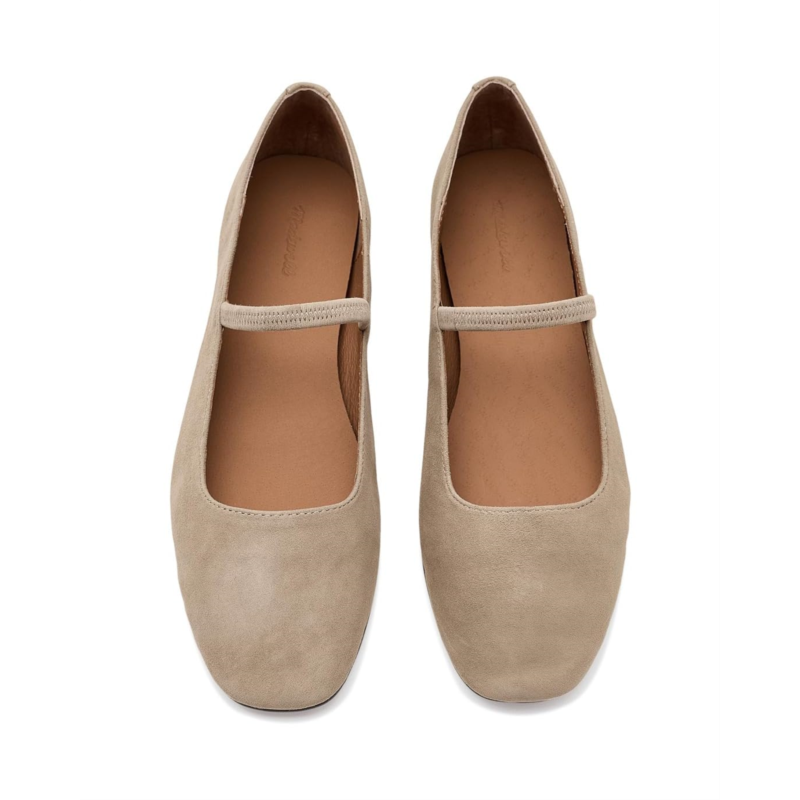 - Breeze through the day in style by donning the Madewell The Greta Ballet Flats in Suede. The chic flats have a suede upper with an elasticized strap and leather lining. The slip-on ballet flats are designed with a round-toe silhouette.