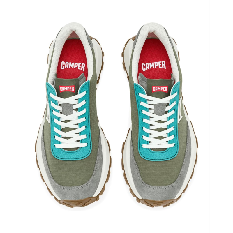 - The Camper Drift Walk fuses high-performance innovation with a vintage aesthetic. Crafted from polyester upper, lining, and rubber insole, this pair of shoes features a round toe design, lace-up closure, contrast sole, and branding on the tongue, footbed, and heel counter.