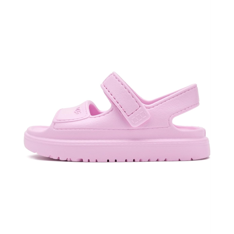 - The UGG Kids Goldenglow is made for little adventurers who love to run, jump, and splash all day long. Designed with a lightweight Ethylene Vinyl Acetate upper, lining, insole, and outsole, this water-friendly sandal keeps tiny feet comfy and supported through every sunny adventure. The cushy outsole crafted from sugarcane Ethylene Vinyl Acetate adds a soft, responsive feel that helps absorb impact while keeping steps light and playful. An easy hook-and-loop closure ensures a snug, adjustable fit, so kids can slip them on quickly and stay secure while exploring the splash park, beach, or backyard.