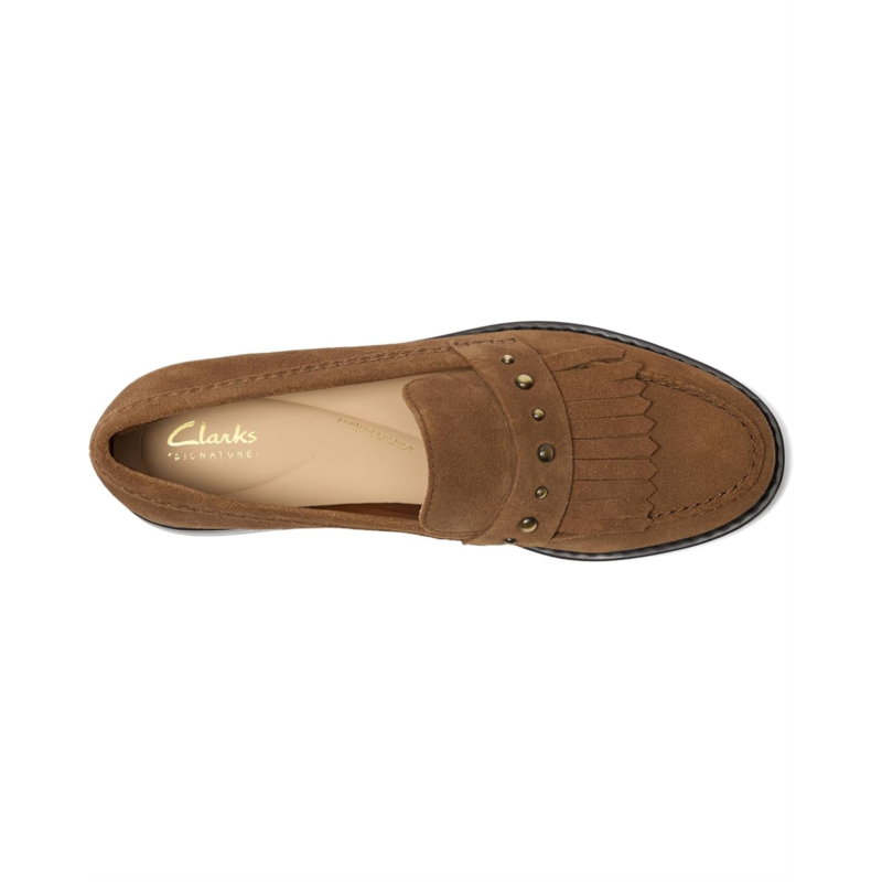 - Refined Clarks Hana Loafer combines soft suede upper with stud detailing and a trending fringe finish for a contemporary, crafted feel that elevates every outfit. Clarks signature leather-lined cushioning meets a flexible sole and slip-on styling for complete breathable comfort, too.
