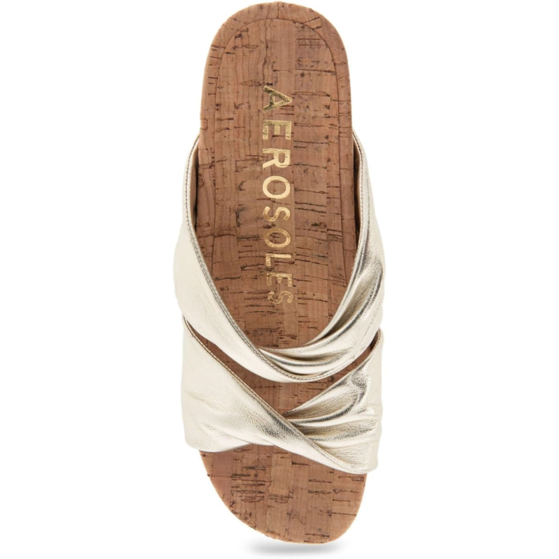 - Embrace your sharp look donning the Aerosoles Mercer. These architectural cork wedge heels feature diamond-flex thermoplastic outsole for traction and stability, polyurethane upper with dual curved strap design, and slip-on construction.