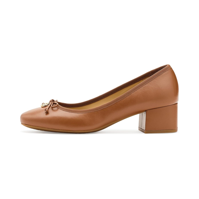 - Bring confidence and comfort to your feet wearing the MICHAEL Michael Kors Piper Flex Mid Pumps. These classic almond toe ballet flats are set on a block heel with leather bow detail and MK charm on a flex rubber outsole that redefines everyday dressing by combining comfort with polished, wearable style. The slip-on style flat comes with a leather upper, polyurethane lining, and a faux leather insole.