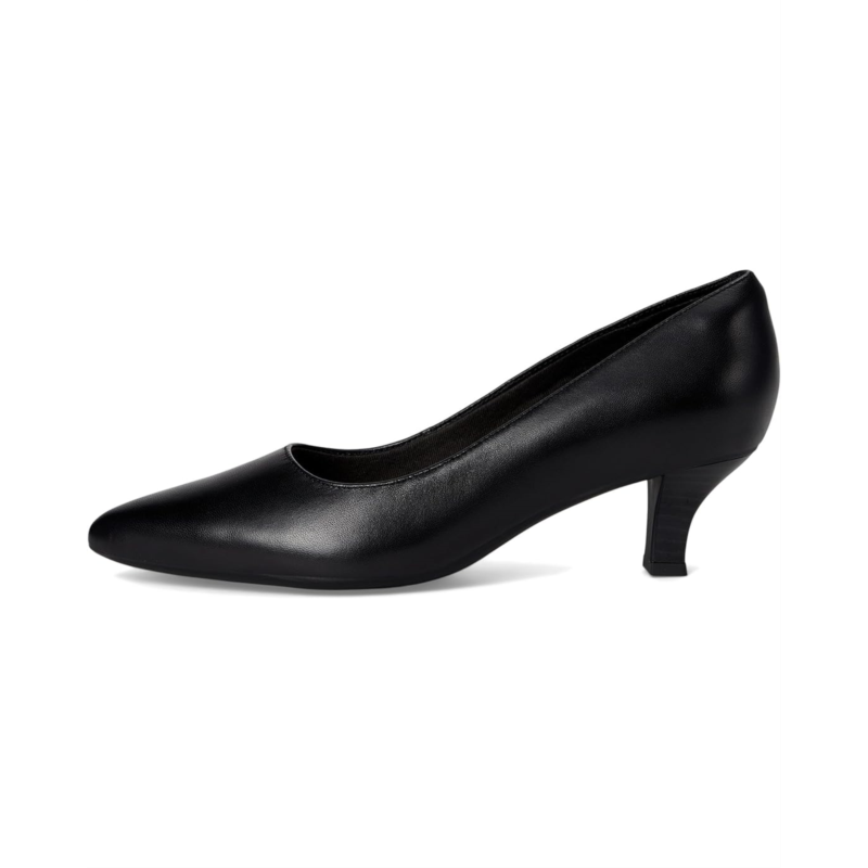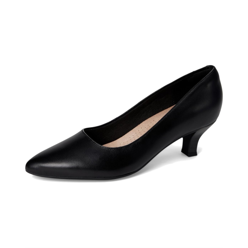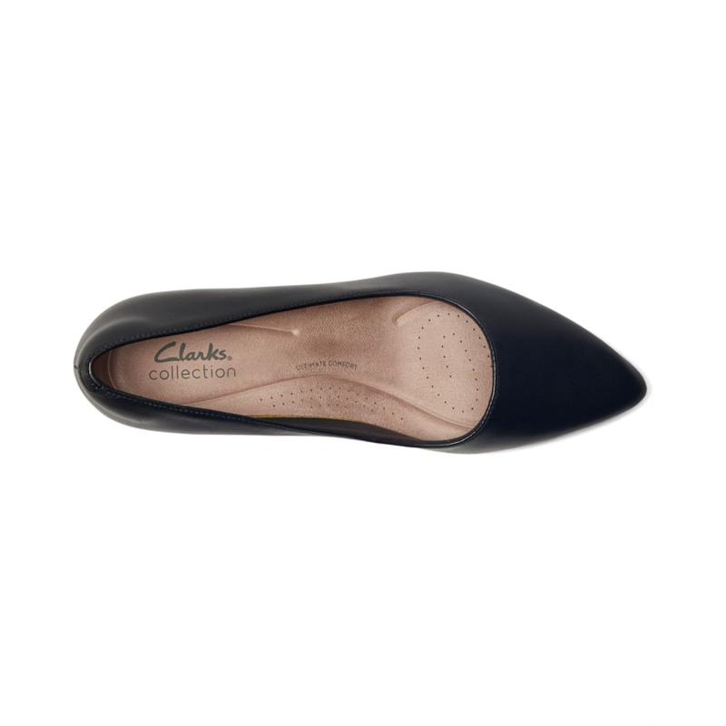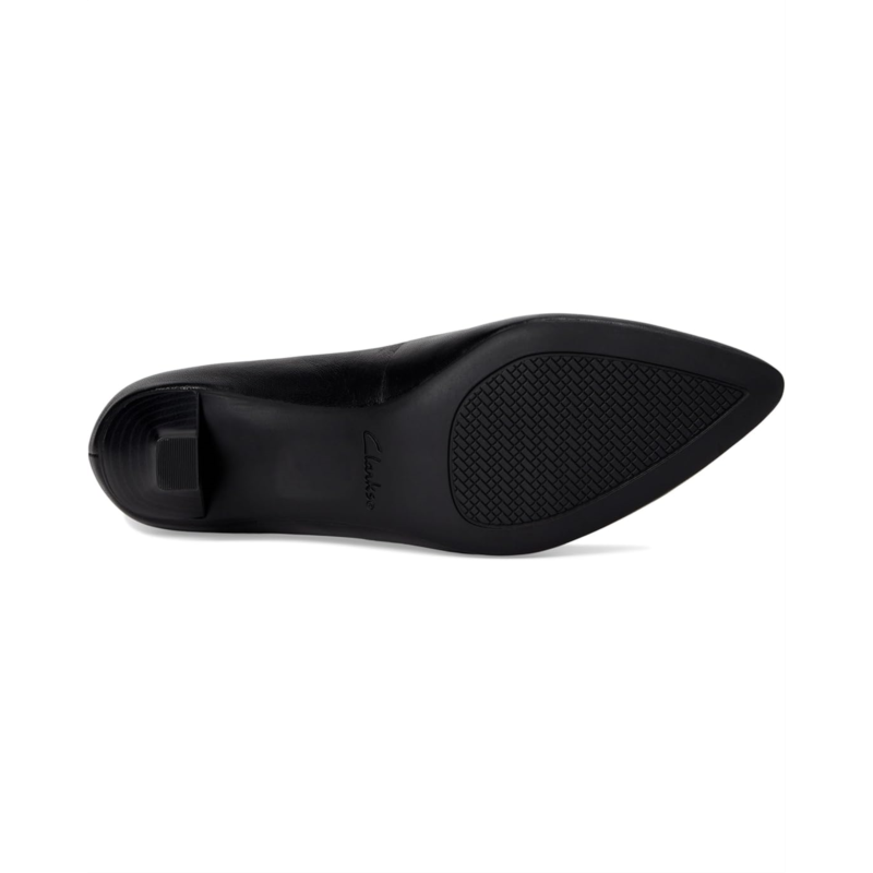 - The Clarks Kepley Vine Pump stands on a comma heel and boasts a sleek pointed toe silhouette. Featuring a pull-on style, the low-top footwear has leather upper construction, breathable mesh lining, and rubber insole for all-day comfort.