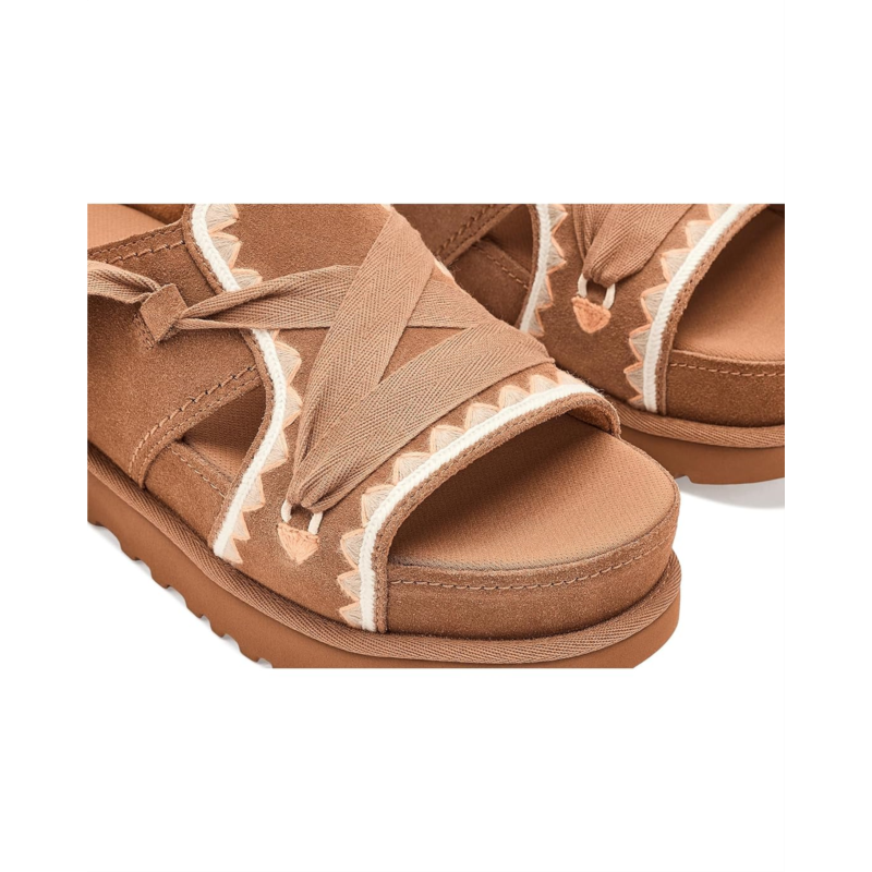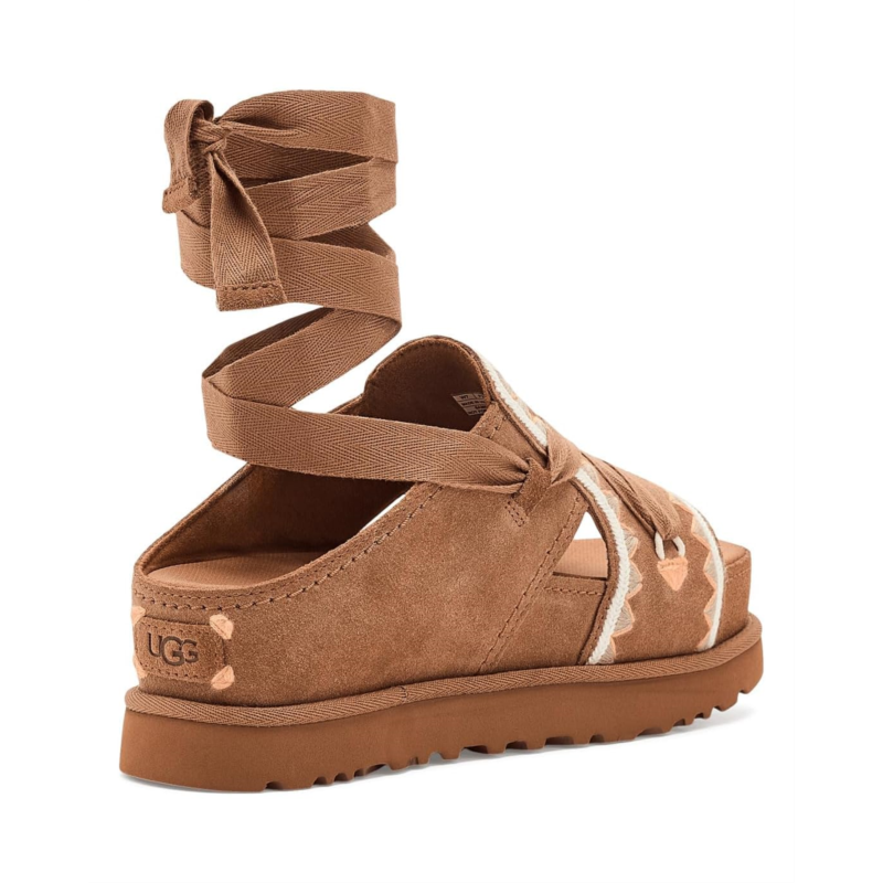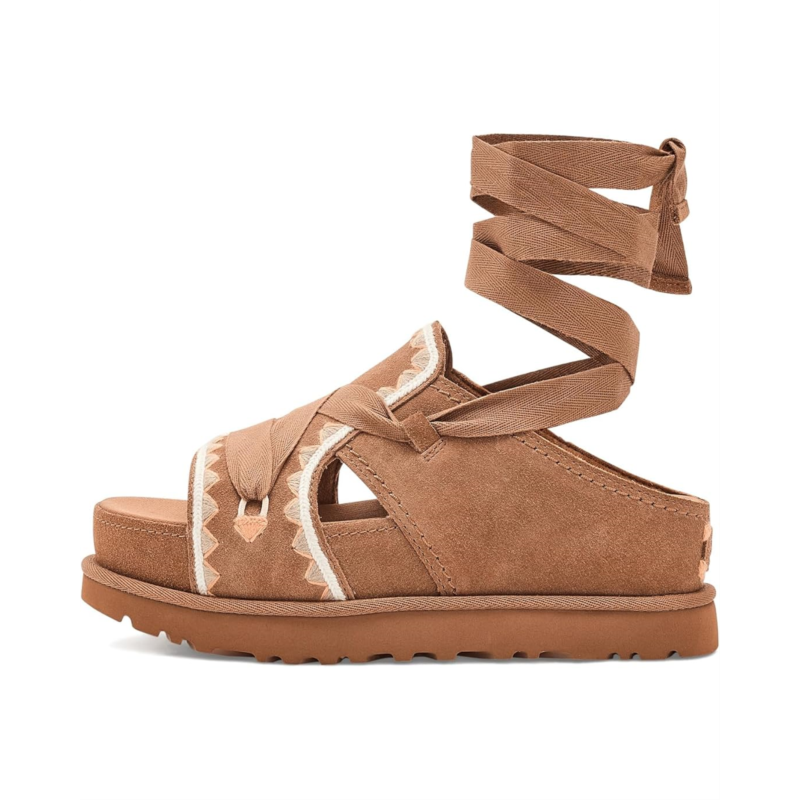 - The UGG Goldenstar Hi Artistitch brings a curated, artistic edge to your wardrobe, proving that everyday glam is all in the details. Crafted with a luxe suede upper and intricate embroidery detailing, this standout silhouette brings artisanal charm to your daily rotation. The adjustable ankle tie with Responsible Cotton laces lets you personalize your fit while supporting mindful sourcing, featuring responsible, recycled, or organic cotton. An additional set of laces offers styling versatility to match your mood. Inside, comfort takes center stage. The textile lining blends recycled polyester with spandex for breathable flexibility, while the sockliner, made with recycled polyester, features a peppermint-infused freshness treatment to help keep things feeling (and smelling) fresh. A contoured EVA footbed cushions every step, paired with a suede-wrapped overlasted midsole and a Sugarcane Ethylene Vinyl Acetate midsole crafted with recycled Ethylene Vinyl Acetate regrind. Finished with a lightweight Sugarcane Ethylene Vinyl Acetate outsole and embossed UGG logo, this slip-on essential delivers sustainable comfort with head-turning style.